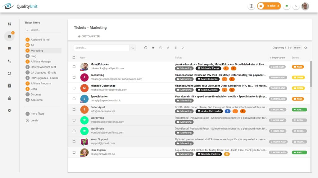 Avec LiveAgent, vous serez en mesure d’impressionner vos clients par votre connaissance de leurs requêtes passées et des détails de leurs achats. Vous montrerez ainsi que vous vous intéressez vraiment à eux, ce qui renforcera la fidélité à la marque, la valeur du cycle de vie du client et la satisfaction du client.