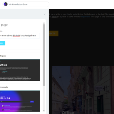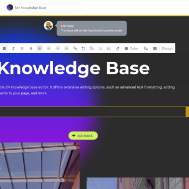 Dans l’ensemble, l’éditeur de base de connaissances de Bitrix24 est assez facile à utiliser, mais vous devez vous donner un peu de temps pour vous y habituer. Comme je l’ai déjà mentionné, tous les utilisateurs ne souhaitent pas s’engager dans un éditeur de site Web à part entière. Si vous avez besoin de créer rapidement une base de connaissances simple, je vous recommande de vous en tenir à quelques éléments seulement, et d’utiliser absolument un modèle comme point de départ. Cela rendra votre travail beaucoup plus facile et rapide.