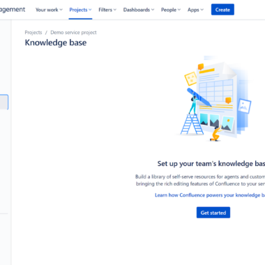 Jira Service Management propose à ses utilisateurs de créer et de gérer différents types de projets pour chaque aspect de leur activité. Par exemple, vous pouvez créer simultanément un projet de service client, un projet de vente et un projet de gestion financière. Vous pouvez avoir une base de connaissances distincte pour chacun de ces projets, et la remplir d’articles pertinents pour chaque projet. La base de connaissances est accessible en cliquant sur n’importe quel projet et en sélectionnant l’option base de connaissances dans la barre de menu de gauche. Cependant, vous devez d’abord obtenir un compte Confluence. Confluence est un produit distinct d’Atlassian, qui se concentre sur la gestion des documents. Vous pouvez l’obtenir gratuitement sur le site officiel. Ensuite, votre fonction de base de connaissances dans n’importe quelle gestion de service Jira fonctionnera correctement.