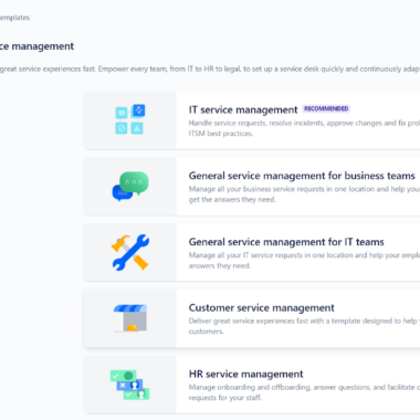 La version de base de Jira Service Management offre un ensemble limité (mais néanmoins assez riche) de fonctionnalités, et elle est gratuite, ce qui signifie que vous pouvez commencer sans rien payer. Rien de plus facile. Il suffit de se rendre sur le site Web de Jira Service Management et de remplir le formulaire d’inscription. Vous pouvez obtenir l’accès à votre compte en quelques minutes et commencer à naviguer. Cependant, vous devez d’abord choisir le modèle de projet que vous souhaitez utiliser et ajouter les détails du projet au modèle. Ceci est très utile pour vous aider à choisir les bons outils pour le travail sans avoir à parcourir de vastes magasins d’applications. La base de connaissances fait partie de chaque projet, vous en disposerez donc quel que soit celui que vous choisissez.