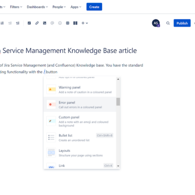 Cette fonction est profondément intégrée aux autres fonctionnalités de Jira, vous pouvez donc y accéder si vous avez accès à d’autres outils Jira. Faire défiler toutes les options peut prendre beaucoup de temps, c’est pourquoi vous devriez toujours commencer à taper le nom d’un élément particulier et vous faire gagner du temps. À part cela, c’est une excellente fonctionnalité à avoir et elle peut vous aider à faire briller vos articles de base de connaissances, ce qui n’est pas une option garantie dans tous les logiciels de base de connaissances.