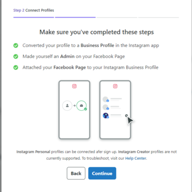 J’ai donc simplement rempli mes informations d’identification Facebook et Sprout Social a indiqué que c’était prêt. Si vous avez du mal à connecter vos pages, Sprout Social propose même un dépannage rapide dans l’onglet suivant, afin que vous n’ayez pas à parcourir une vaste base de connaissances.