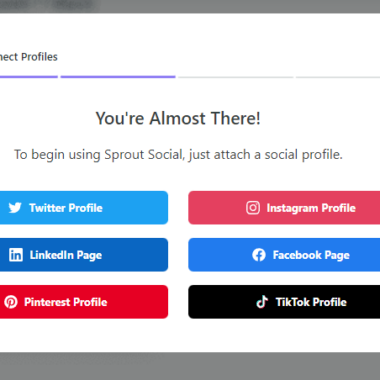 Après quoi, je m’attendais à voir un tableau de bord ou une sorte de page de bienvenue. À ma grande surprise, Sprout Social n’a pas tourné autour du pot et m’a proposé de connecter directement mes comptes de réseaux sociaux.