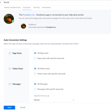 Fonctionnalités liées aux réseaux sociaux de Zoho Desk