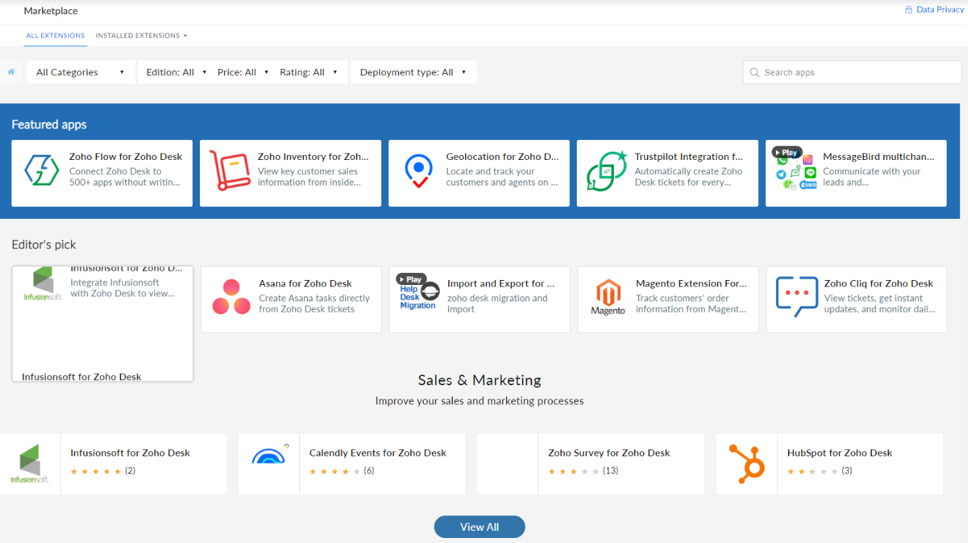 Enfin, vous pouvez ajouter d’autres extensions à partir de la place de marché de Zoho Desk.