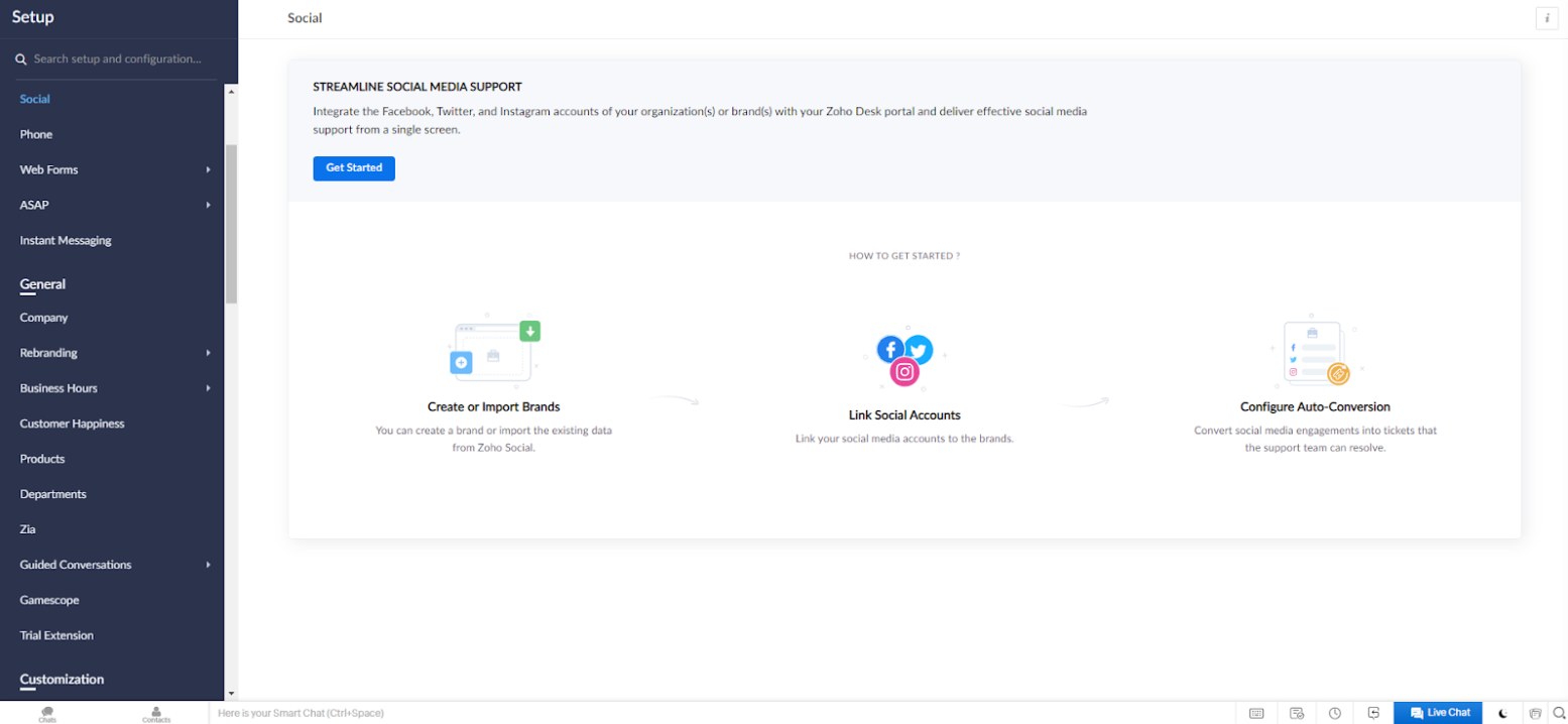 Premiers pas avec les fonctionnalités de réseaux sociaux de Zoho Desk