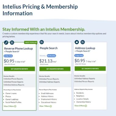 À première vue, le site Internet est simple, facile à naviguer et comprend des informations cruciales pour les visiteurs. Vous pouvez clairement voir quels sont les services offerts par Intelius. Vous n’avez pas besoin de parcourir le site Internet pour trouver des informations sur les prix, l’annulation de l’abonnement, la politique de confidentialité, etc.
