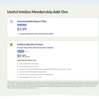 L’autre module complémentaire est Intelius Identity Protection. Ce module complémentaire contribue à améliorer votre protection en surveillant votre identité et en vous offrant une assurance contre le vol d’identité. Vous pouvez payer 9,95 $ par mois ou 119,40 $ par an.