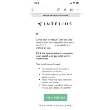 Les entreprises peuvent ensuite utiliser ces données à des fins de marketing ou de vente et élargir leur base de données clients. Gardez à l’esprit que les informations fournies par Intelius ne sont pas toujours exactes et peuvent parfois être invalides.