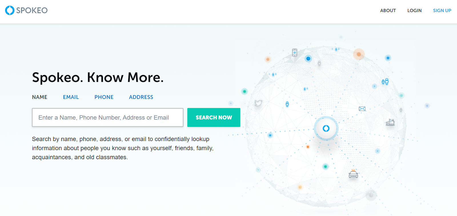 La première chose que vous voyez lorsque vous visitez le site, ce sont les quatre options de recherche. Vous pouvez rechercher des données sur la base du nom, de l’adresse, du numéro de téléphone ou de l’adresse mail. Spokeo est basé aux États-Unis, ce qui signifie qu’il n’accepte que les numéros de téléphone enregistrés aux États-Unis et que toutes les informations sont limitées aux États-Unis.