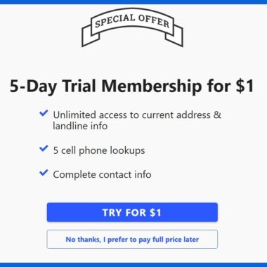 Whitepages propose également un abonnement d’essai de 5 jours pour 1 $, qui vous donne un accès illimité à des informations telles que l’adresse actuelle et le numéro de téléphone fixe. L’abonnement d’essai n’inclut pas de plus amples fonctionnalités. Elle ne comprend que 5 recherches inversées de numéros de téléphone portable, ce qui ne vous donne pas beaucoup d’espace pour tester leurs services.