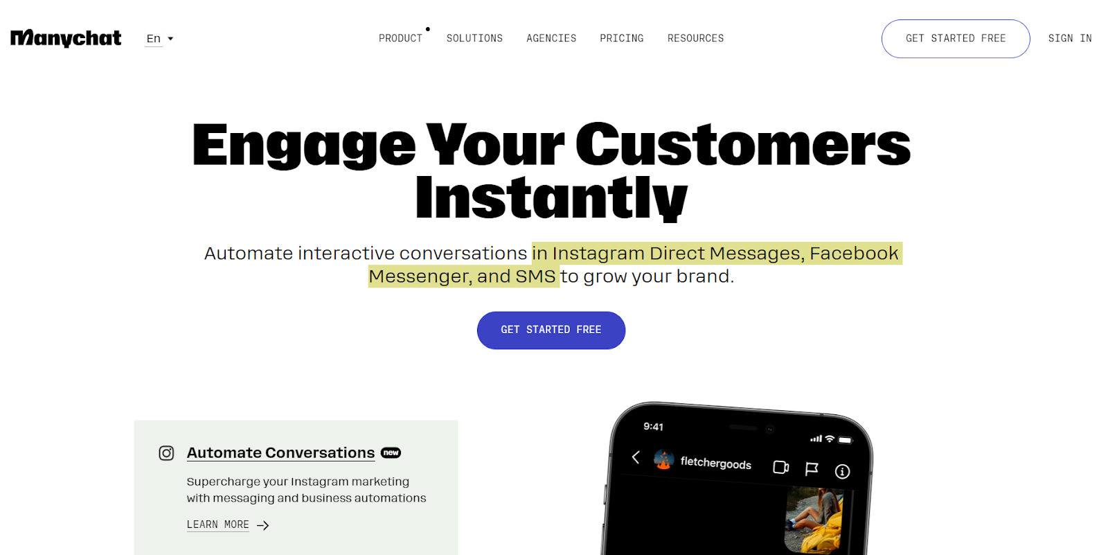 Manychat est une plateforme de construction de chatbot conçue pour créer des chatbots interactifs dans les messages directs d’Instagram, de Facebook Messenger et par SMS. Elle propose une interface visuelle de type glisser-déposer qui permet aux utilisateurs de concevoir et de personnaliser leurs chatbots sans avoir besoin d’écrire le moindre code. La plateforme offre également une gamme de fonctionnalités attrayantes. Il s’agit par exemple de modèles préconstruits, de la segmentation de l’audience, de la diffusion et de l’analyse.